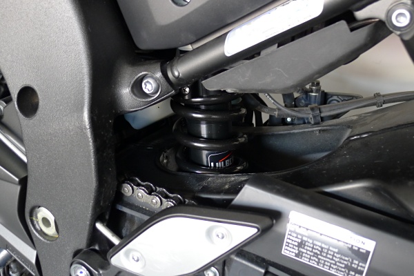 Das Federbein ist von Wilbers Typ 640 black line (Artikel 640-0999-00) mit zusätzlicher hydraulischer Federvorspannung Artikel 625-0046-00).