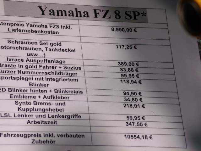 Auf der Intermoto in Saarbrücken stand heute ne FZ8 mit goldenen Schrauben LSL Lenker, Griffe und Ixil Endtopf. Sieht ganz nett aus. :wink: