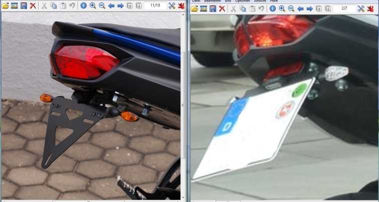 Zur Auswahl steht jetzt Zietech mit Reflektor oben (rechts auf dem Bild) oder Alphatechnik (hier kommt der Reflektor unters Kennzeichen)