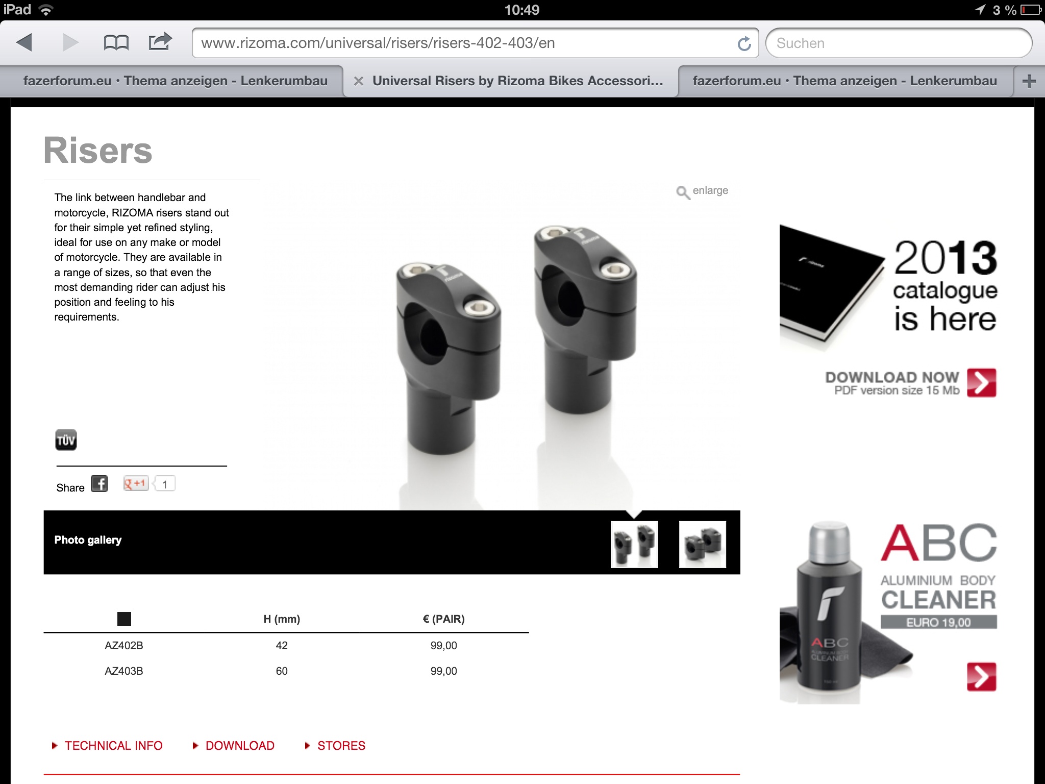 Bei rizoma auf der Homepage und auch in allem online Shops die ich bis jetzt durchsucht habe gibt es nur die 60mm und die 42mm riser. Wenn man sich aber mal das Gutachten ansieht welches man zb auch auf der rizoma Seite Laden kann gibt es noch zwei andere riser für die freigebe der fz8... Az405 und az432 die einen Höhe von 24 und 32 mm haben...
