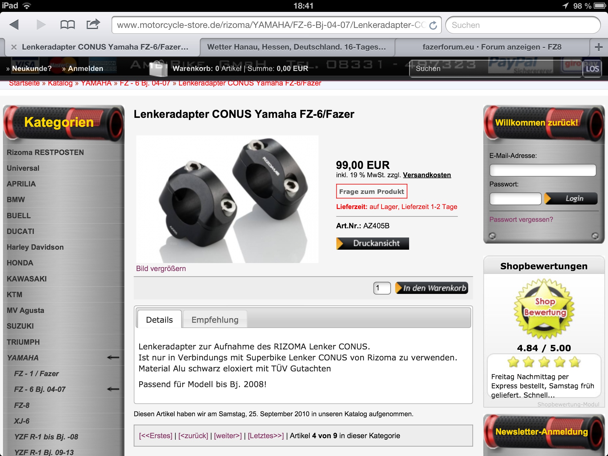 Mit einer 15% Aktion bei Polo habe ich für Lenker & Gewichte nur ca. 59,--€ gezahlt. Ach ja, eine ABE und Teilegutachten lag auch noch bei.